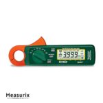 The Extech 380950 is a mini clamp meter capable of measuring both AC and DC currents up to 80 A. Its extra-small jaw and compact form make it well suited for tight spaces. It also offers voltage, resistance, frequency, capacitance, duty cycle, continuity, and diode measurement functions, making it a versatile multi-tester for electricians and technicians.