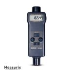 Hybrid measurement modes: contact (~0.5 to ~19,999 rpm) and visible-light photo non-contact (~5 to ~99,999 rpm).