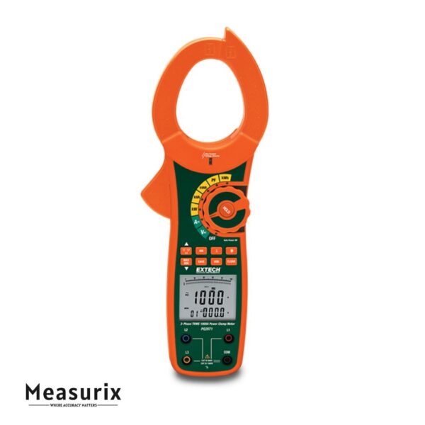 The Extech PQ2071 is a versatile True RMS clamp-meter designed for single-phase and balanced three-phase systems, capable of handling currents up to 1000 A and delivering full power-analysis (active, apparent, reactive), power factor and phase-angle measurement in one handheld tool.
