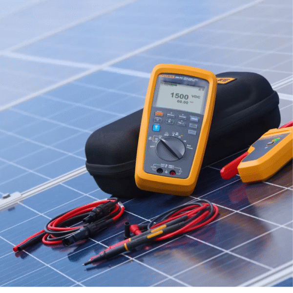 The Fluke 283 FC True-RMS Digital Multimeter, rated CAT III 1500 V and CAT IV 1000 V, is built to set a new standard for high-voltage DC testing. It is engineered for professionals working in challenging environments such as large-scale solar photovoltaic systems, wind energy, electric railways, and advanced data centers. The meter combines enhanced safety with dependable accuracy, ensuring reliable and repeatable results even in demanding conditions.