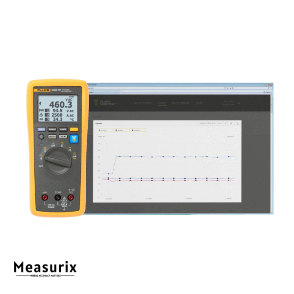 This setup allows professionals to safely monitor voltage, current, and temperature readings without being directly exposed to energized equipment or moving machinery. The wireless connectivity reduces the need to physically move between test points, saving time and effort, especially in multi-phase systems. With Fluke Connect™, multiple modules can be linked for simultaneous measurements, and data can be logged—storing up to 65,000 time-stamped readings.