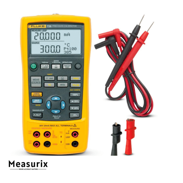 The Fluke 726 Precision Multifunction Calibrator is designed for process professionals who need accuracy, versatility, and ease of use. It measures and sources almost all process parameters—including volts, mA, resistance, frequency, RTDs, thermocouples, and pressure—making it ideal for testing sensors, transmitters, valves, and switches in the field.