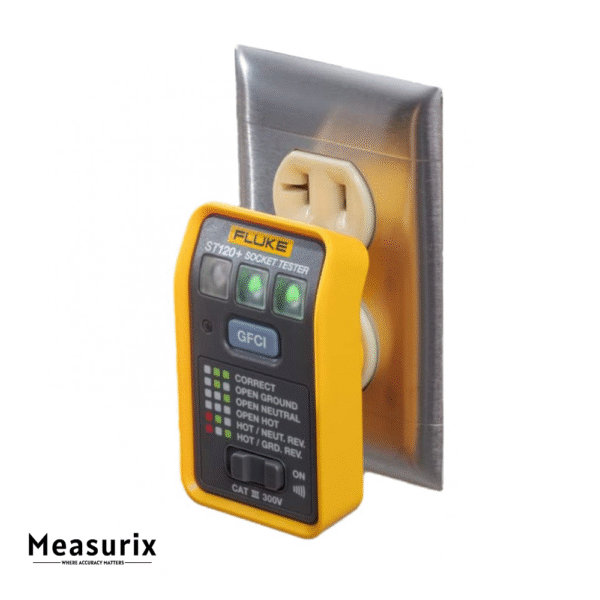 Compact, CAT III 300 V rated, and simple to use, the Fluke ST120+ is perfect for electricians, technicians, and anyone needing quick, accurate outlet verification.