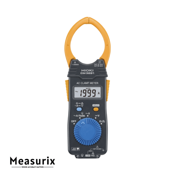 The Hioki CM3281 is a high-performance AC clamp meter designed for industrial and electrical applications. It measures AC currents up to 2000 A using the mean rectification method and features a large 46 mm jaw diameter for easy clamping of thick cables. With a broad operating temperature range of -25°C to 65°C and a rugged design that withstands drops from up to 1 meter, the CM3281 is built for demanding environments.