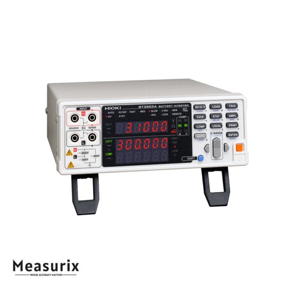 The Hioki BT3563A Battery HiTester is a high-precision instrument designed for quality inspections, development, and maintenance of battery cells, modules, and packs. It provides accurate measurement of internal resistance (AC-IR) and open-circuit voltage (OCV), making it ideal for assessing the performance and safety of lithium-ion batteries used in electric vehicles, energy storage systems, and other high-voltage applications.