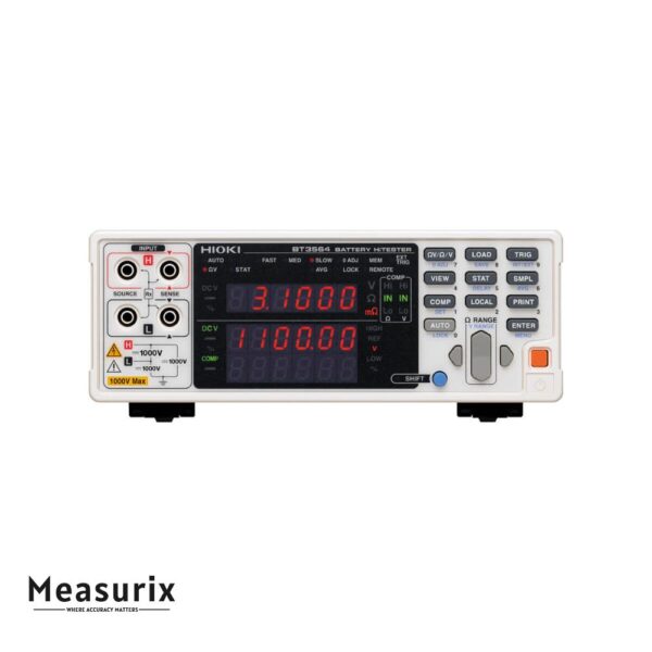 The Hioki BT3564 Battery HiTester is a high-precision benchtop instrument designed for testing high-voltage battery packs, particularly in electric vehicles (EVs) and plug-in hybrid electric vehicles (PHEVs). It simultaneously measures internal resistance and open-circuit voltage (OCV) of battery packs up to 1000 V, making it ideal for production line testing and quality control applications.