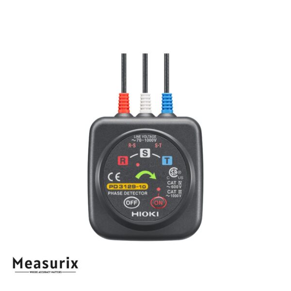 The PD3129-10 is a non-contact phase rotation detector with non-metallic voltage clips. It shows the phase sequence (positive or reverse) in three-phase circuits (70 to 1000 V AC), works safely through cable insulation, and gives visual and audible feedback for easy verification.