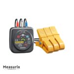 The PD3259-50 is a handheld instrument intended for three-phase systems. It uses clamp-on, non-metallic sensors to measure voltage and determine phase sequence, eliminating the need for bare wire contact. Just clip the sensors around the insulated cable, and it shows the phase order (positive or negative), line-to-line voltages, and frequency. It supports three-wire and four-wire systems, and can also detect open phases or predict ground phase in three-wire systems. The device is rugged and field-ready: it’s rated for safety up to 600 V (CAT IV), protected against dust and splashes (IP54), and can withstand a 1 m drop. It offers features such as backlight, buzzer alerts for negative phase, hold function to freeze readings, auto power-off, and low battery warning. With the optional wireless adapter installed, it can send data via Bluetooth to a smartphone or tablet for logging or report generation. The display updates about every 0.5 seconds, and the device’s response time is within a few seconds. It’s powered by four AA batteries, giving several hours of operation under normal usage.