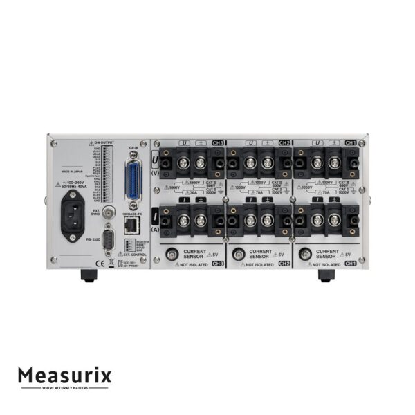 Its frequency coverage spans from near DC (0.1 Hz) up through 100 kHz, allowing it to accurately follow both slow and fast changing signals, harmonics, and inverter switching components. Measurement items include voltage, current, active/apparent/reactive power, power factor, phase angle, frequency, efficiency, waveform peaks, crest factors, ripple, etc. It also features harmonic analysis (up to the 50th order), and maintains accuracy even under low power factor or no-load conditions. The meter offers various interface options (e.g. LAN, RS-232C, GP-IB, analog / D/A outputs depending on model), external synchronization so multiple units can be aligned in time, and extensive external sensor support. It is packaged in a rack-friendly benchtop form, with display, update rates, and options oriented towards both lab characterization and production test environments.