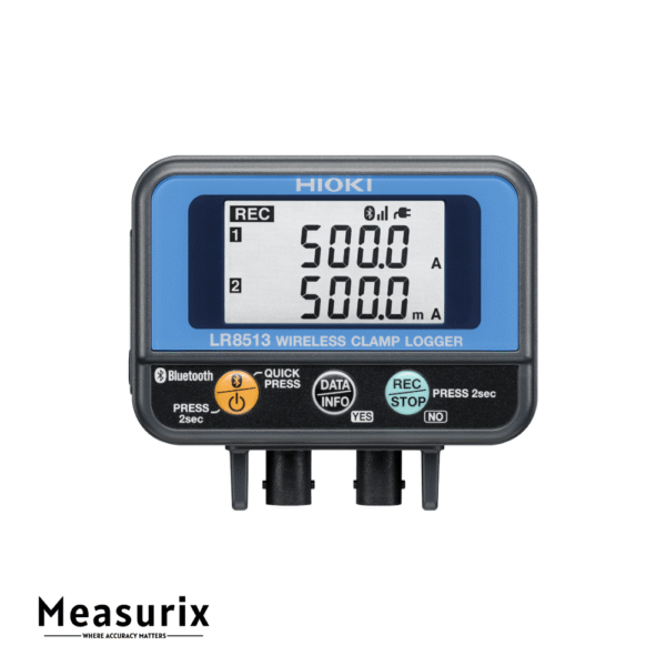 The Hioki LR8513 is a versatile, two-channel wireless data logger that enables precise measurement of electrical parameters in various applications. By connecting compatible clamp sensors, users can monitor AC and DC load currents and AC leakage currents with ease. The device’s Bluetooth® capability allows for seamless data transmission to Android™ tablets or Hioki’s LR8410 Wireless Logging Station, ensuring real-time monitoring and data collection.
